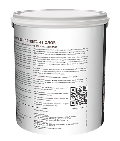 Специальный прозрачный запечатывающий лак на акриловой основе для создания прочного защитного покрытия паркетных и деревянных полов, мебели, а также других деревянных поверхностей внутри помещения