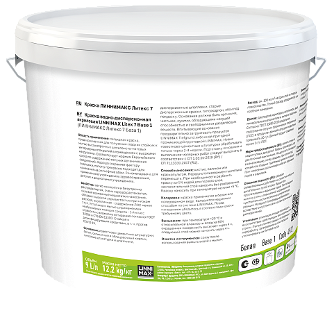 Краска может быть колерована в системе LINNIMAX. Проверьте соответствие цветового тона перед использованием и старайтесь наносить материал из одной партии на соседние поверхности.